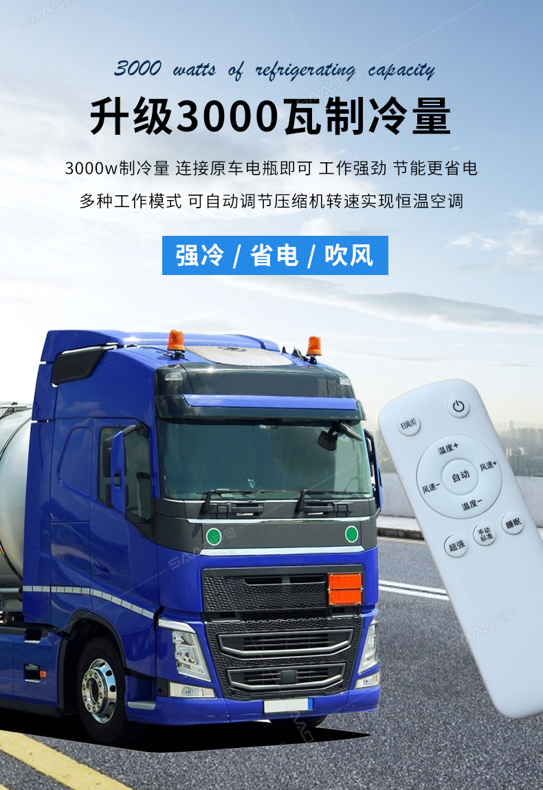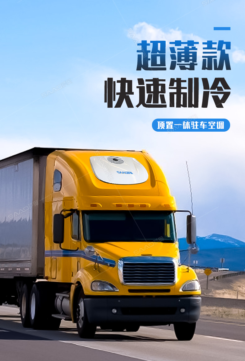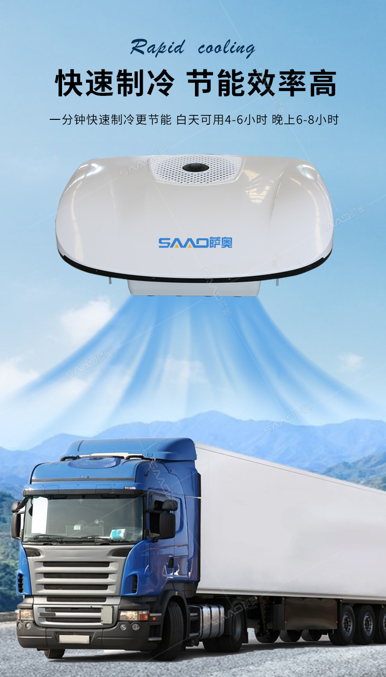 SA-D8000車載頂置駐車空調主要用于卡車、貨車等大車的制冷。一分鐘快速制冷高效節能,白天可用4-6小時晚上6-8小時。