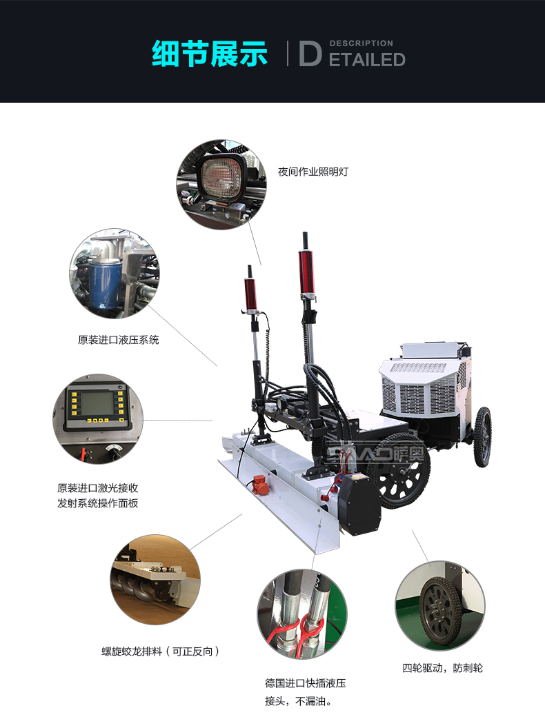 我廠專業生產制造激光整平攤鋪機,品質保證,全國發貨。有座駕式6輪激光整平機,座駕式4輪激光整平機,手扶式激光整平機,小型激光整平機,規格齊全,如需了解請致電24小時免費電話:400-860-5689
