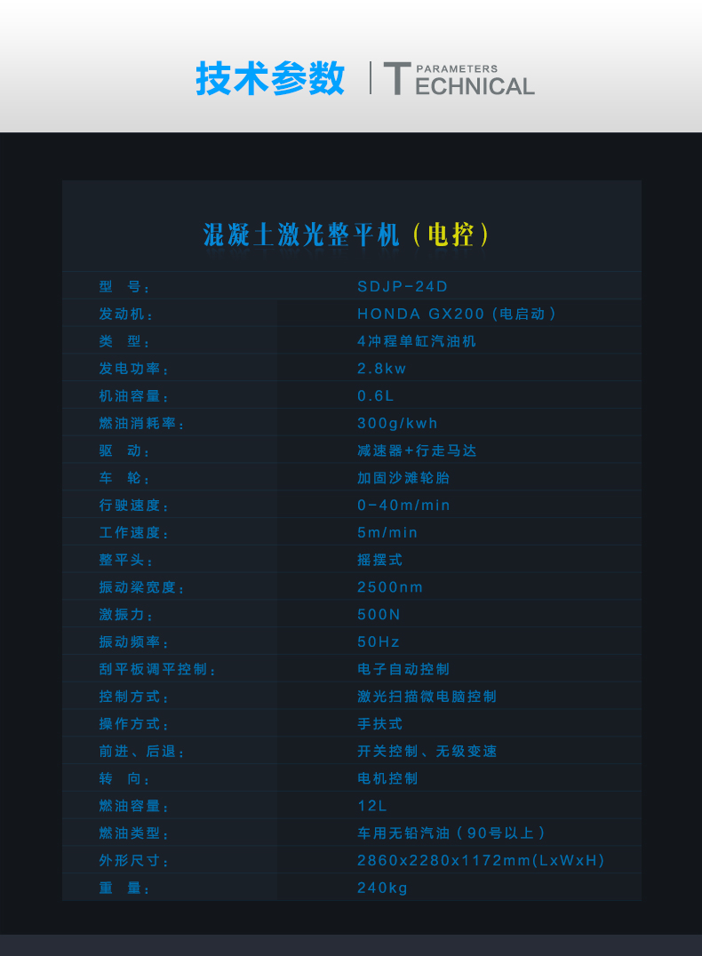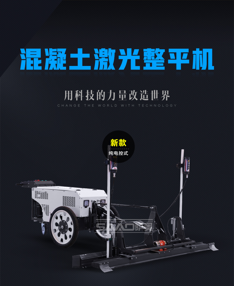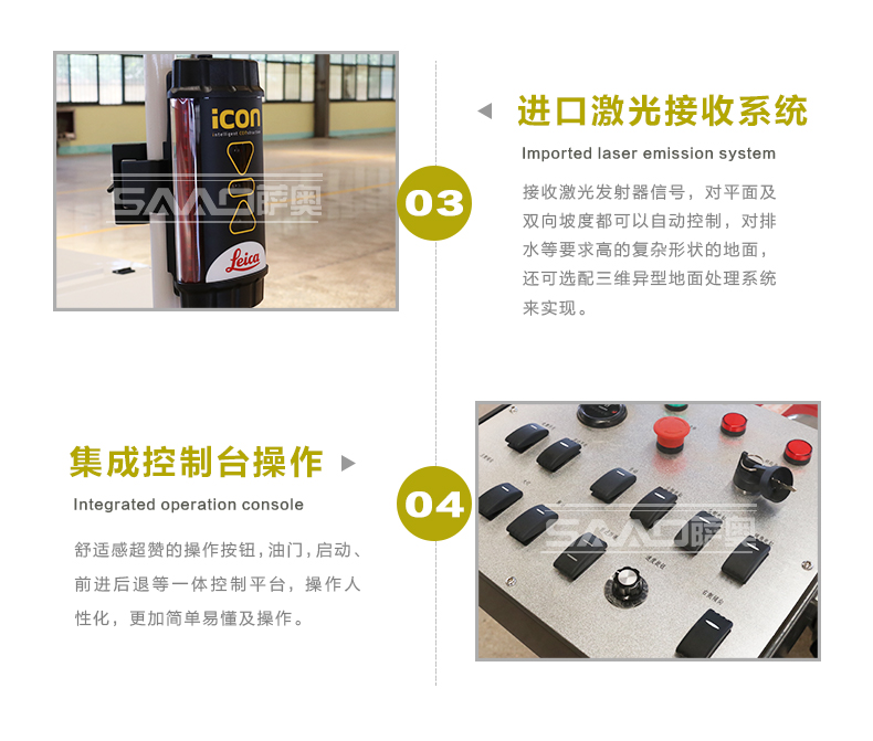 手扶式電控激光整平機是原裝進口激光發射接收系統,兩種輪胎可選,本田汽油動力,控制面板多樣化。