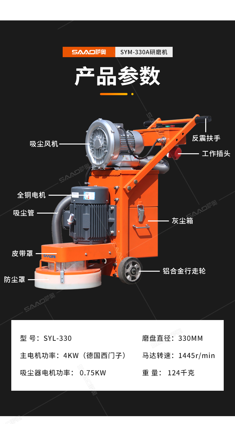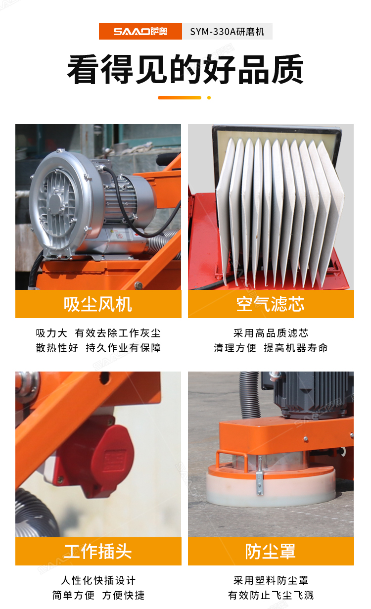 SYM-330手推式無塵地面研磨機,是集研磨和吸塵為一體的先進的路面機器,邊打磨邊吸塵,為我們提供良好的無塵打磨環(huán)境。特別是在地面混凝土強度低的情況,如果配上砂紙磨片,也可以打磨環(huán)氧膩子層;同時對環(huán)氧膩子層的磨損小,提高環(huán)氧地面的平整度。