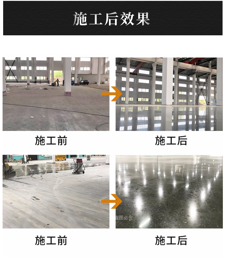 本產品通過有效滲透,與混凝土中的游離氧化鈣成分發生化學反應,使混凝土中的結構更密制,堅固,毛細孔被有效密封。大大提高了混凝土的抗滲透,耐磨,耐腐蝕,高光澤,高硬度的各項性能指標。