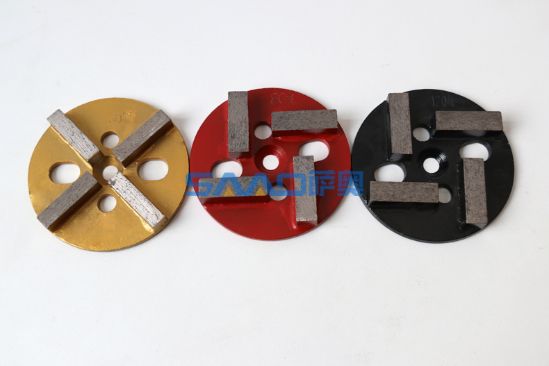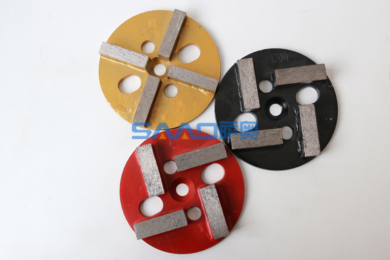 用途: 早期常用于花崗巖、水磨石整平,打磨的粗加工.現在常用于混泥土地面,環氧地坪,如地下停車場,工廠地面等拋光前的粗加工,去除其表面堅硬的環氧、乙炔等附著物.采用傳統刀頭技術結合地坪磨片特點,扇形磨塊和圓形磨塊,在翻新過程中效率更高,同時具有不易崩邊,壽命長的特點.適合各種國產以及進口打磨機和翻新機使用。