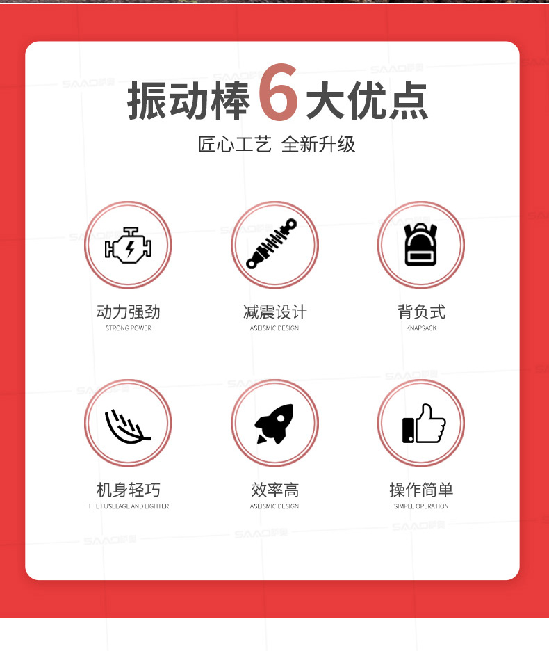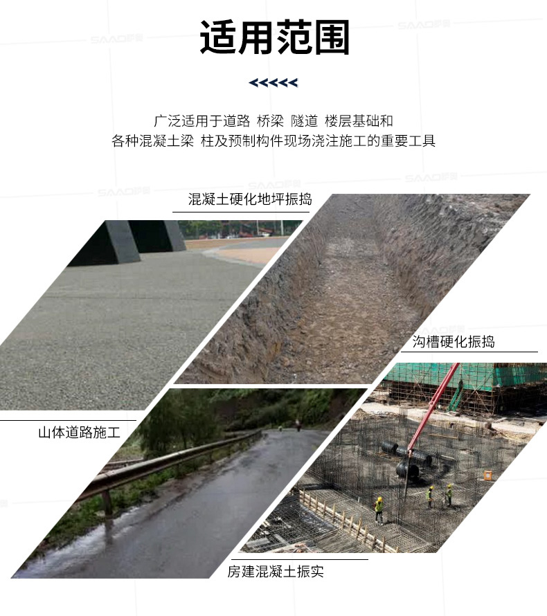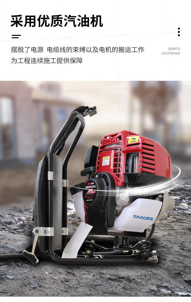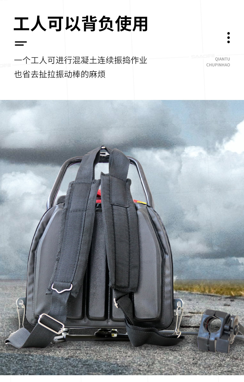 薩奧牌混凝土背負式汽油機振動棒是采用優質汽油機為動力直接驅動,是廣泛適用于道路、橋梁、隧道、樓層基礎和各種混凝土梁、柱及預制構件現場澆注施工的重要工具,是偏遠無電