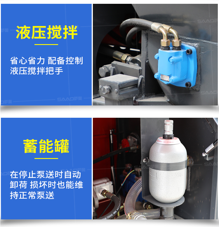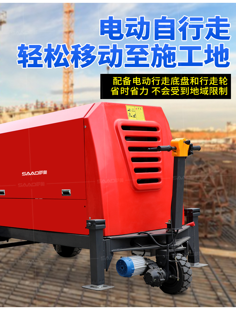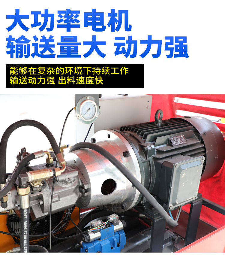 采用獨創的泵車尾輪驅動系統輕松解決移動時帶來的各種困難;采用雙排風冷散熱系統散熱效果更好,液壓系統采用壓力更高,性能更穩定的柱塞式自動變量主油泵,采用先進的三維立