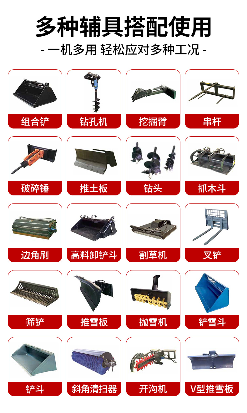 滑移裝載機(jī)液壓舉升,可以任意搭配輔具。
