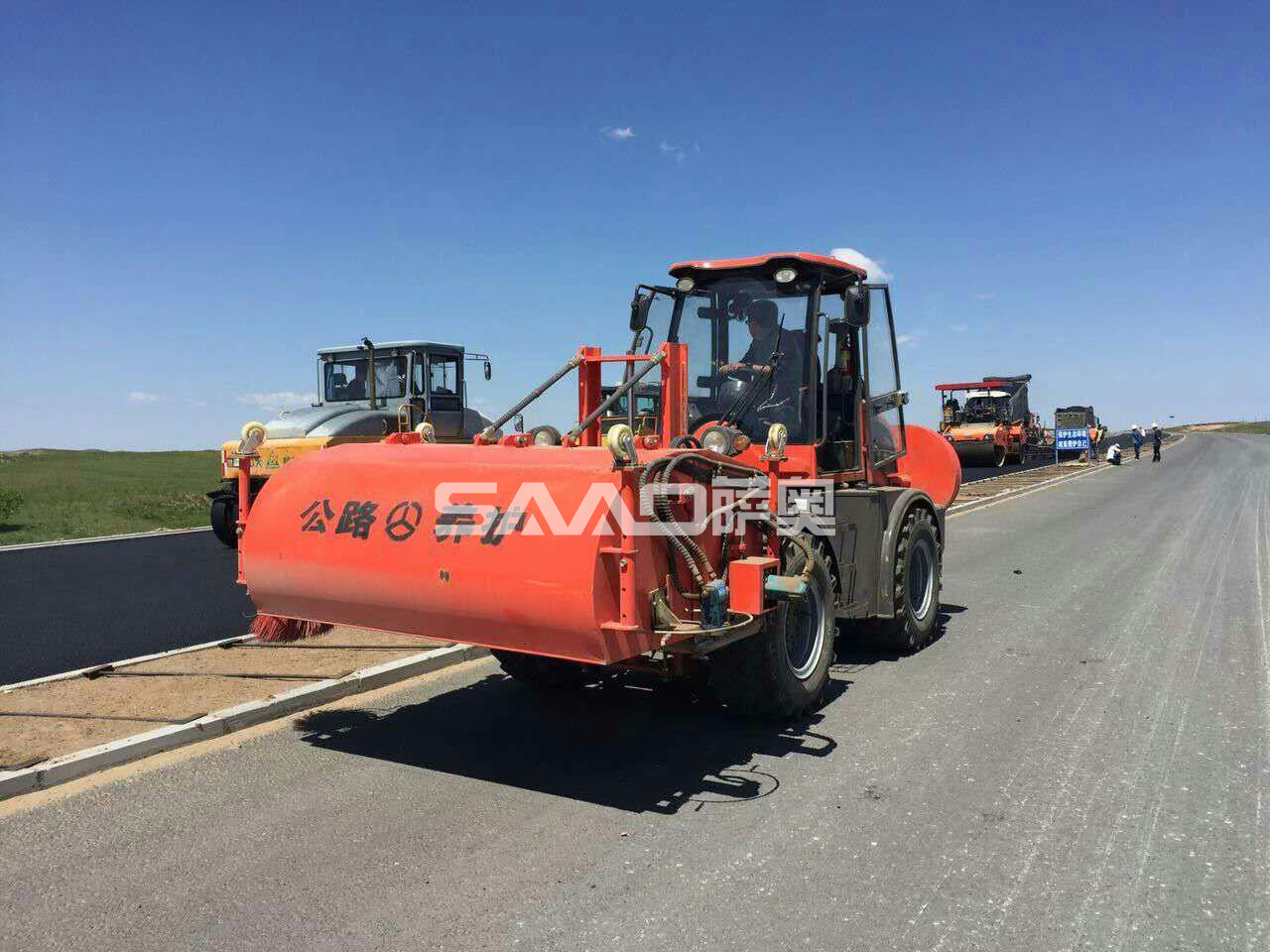 根據路面作業要求,在攤鋪瀝青作業前,要求水穩層或銑刨路面保持清潔,不能有沙石等雜物。一般情況下每50公里10人需要5個工作日。而薩奧道路施工強力清掃機最多只需要1個工作日就可以清掃干凈,大大提高了安全性和效率。