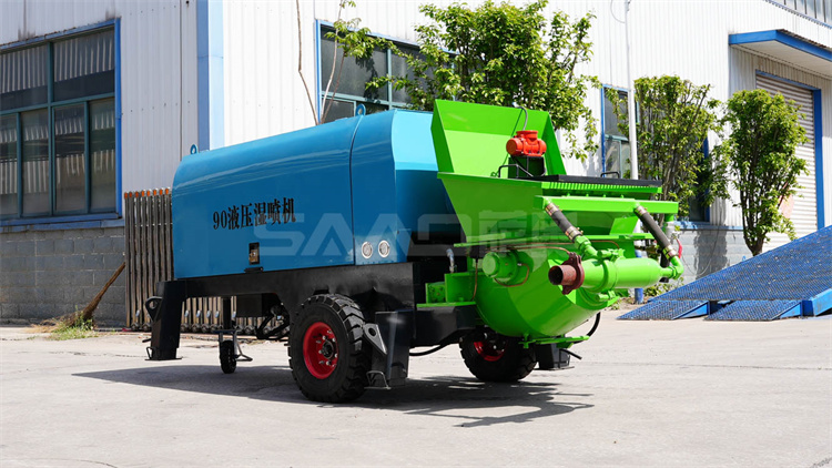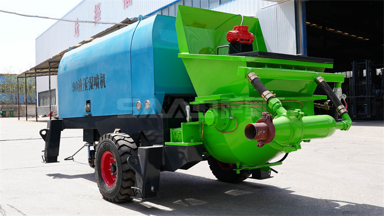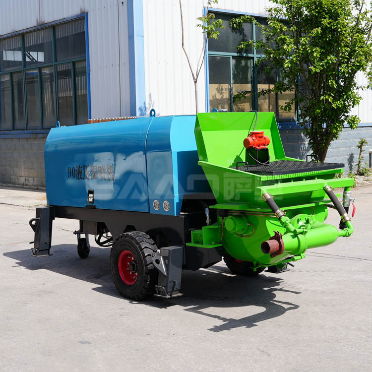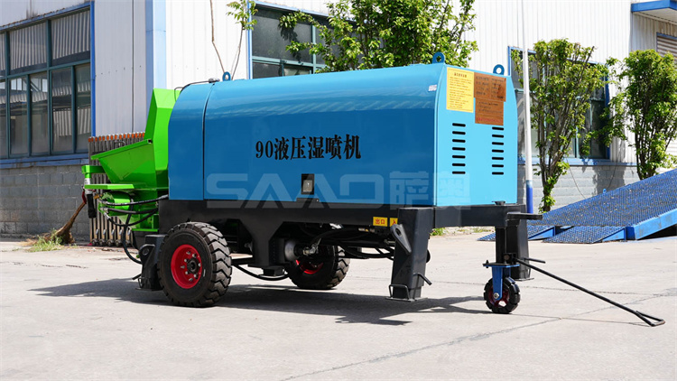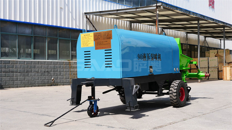 液壓濕噴機是利用液壓泵產生的推力,使用兩個油缸往復交替運動,將稠密流物料由輸送管道送至混流管處,經壓縮空氣形成稀薄流 通過管道送至噴頭處,在噴頭加入相應比例的速凝劑,直接噴漿到受噴面上的一種機、電、液、三合一的機械設備,被普遍應用于公路、鐵路、隧道、建筑、水電站等工程建設中。