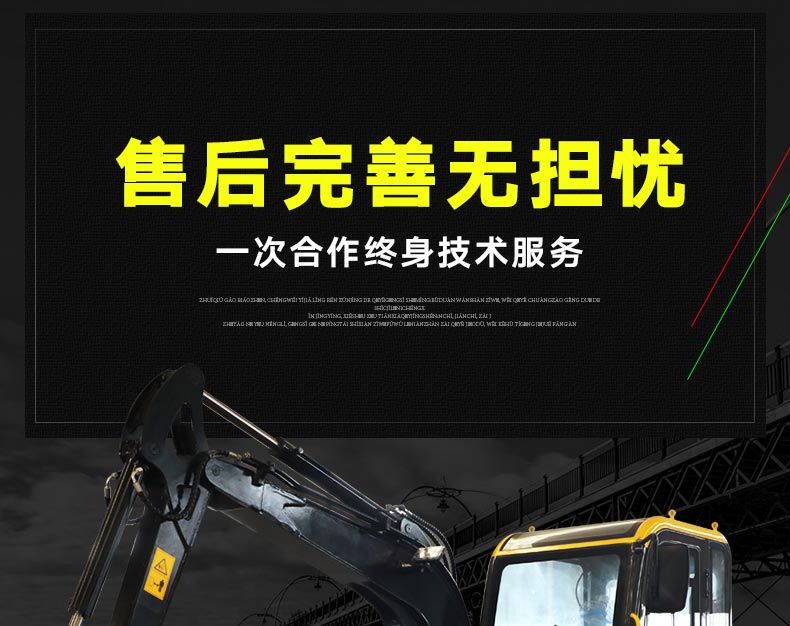 3,持久:裝有提升作業能力大容量變量柱塞泵帶有壓力補償閥的液壓系統,使同時進行鏟斗+小臂+大臂+回轉操作變得順暢。