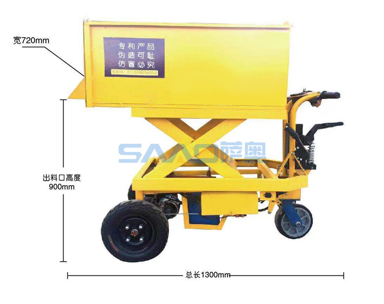 升降式混凝土小推車其主要特點是料斗升降式、尾后出料口和電動行走。