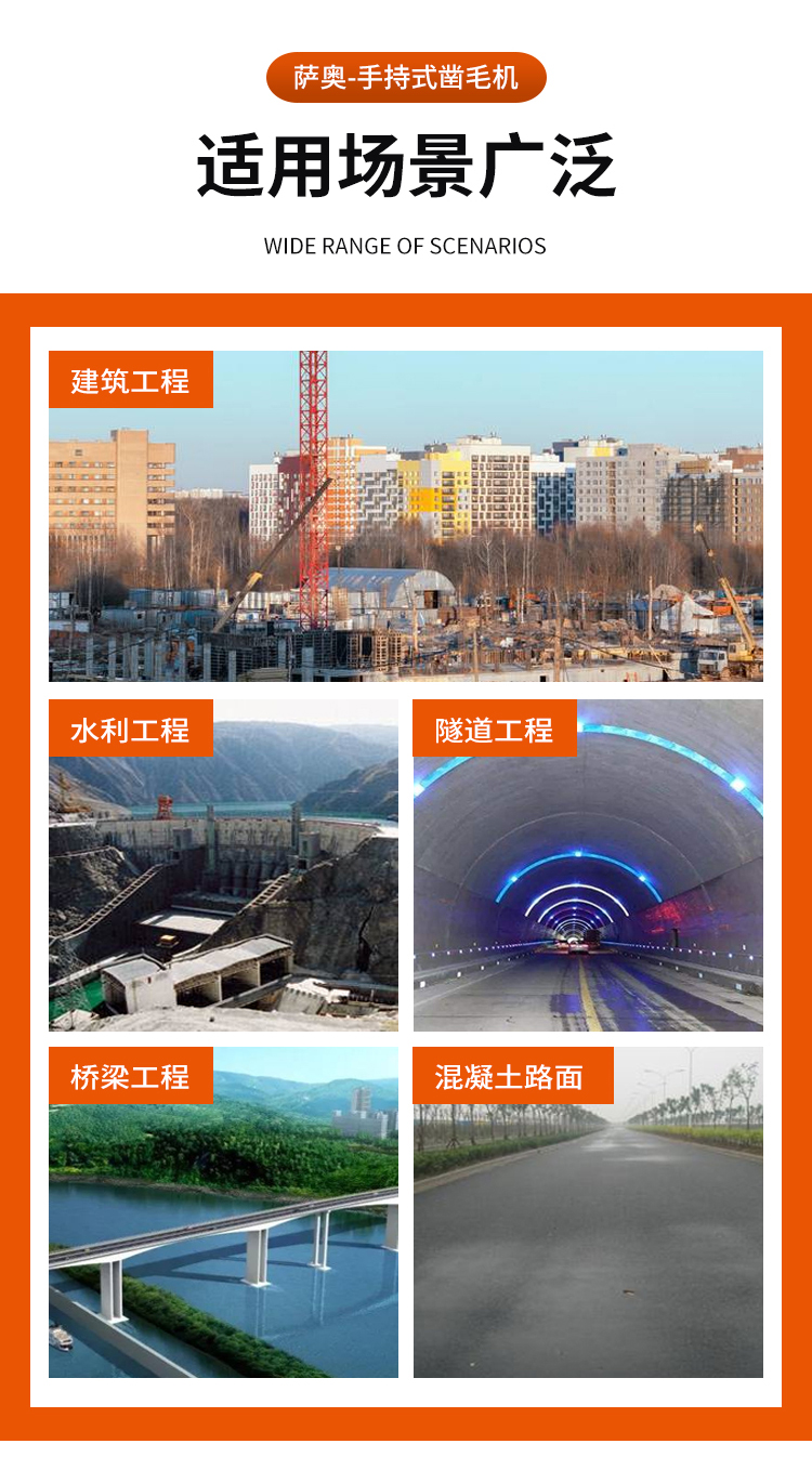 主要適用于水庫(kù)、大壩滲漏,險(xiǎn)橋危橋、電廠、隧洞、高速公路、鐵路橋面以及箱梁混凝土等眾多領(lǐng)域;主要是對(duì)混凝土表面進(jìn)行剔鑿,建筑物墻體、地面以及市政工程混凝土面層剔除、修補(bǔ)、翻新、加固等。