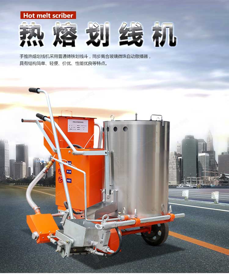 SAAO-160手推熱熔劃線機采用普通鑄鐵劃線斗,同步離合玻璃微珠自動撒播器,具有結構簡單、輕便、價優、性能優良等特點。