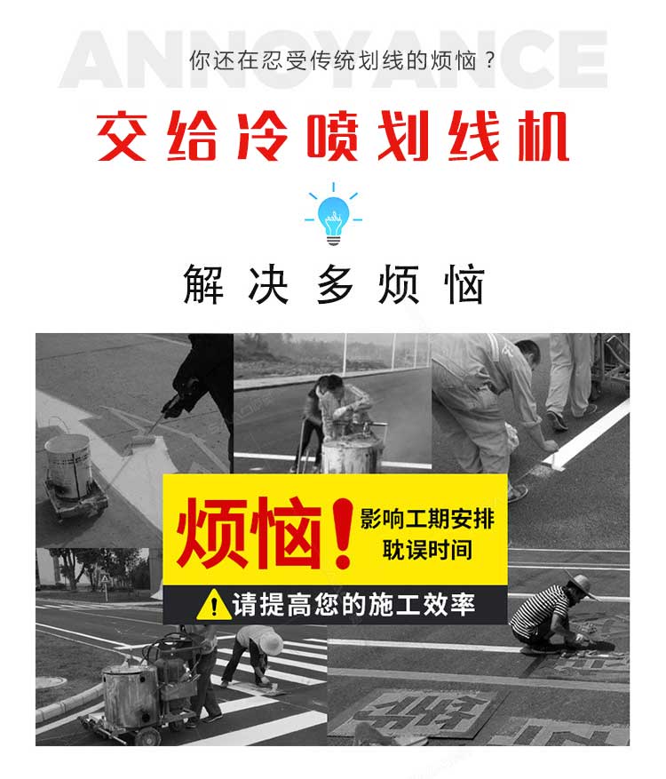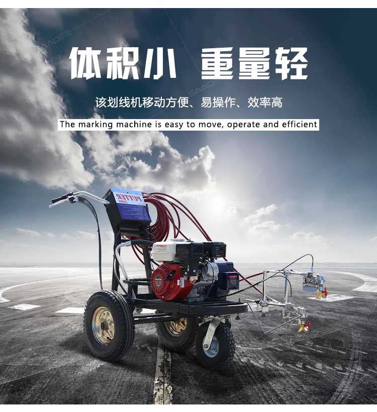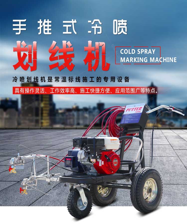 產品介紹: 冷噴劃線機是常溫標線施工的專用設備,噴出的線型清晰、流暢、飽滿、均勻,主要用于公路、停車場、機場、加油站、公司廠區等涂畫直線、虛線、曲線、斑馬線、文字、
