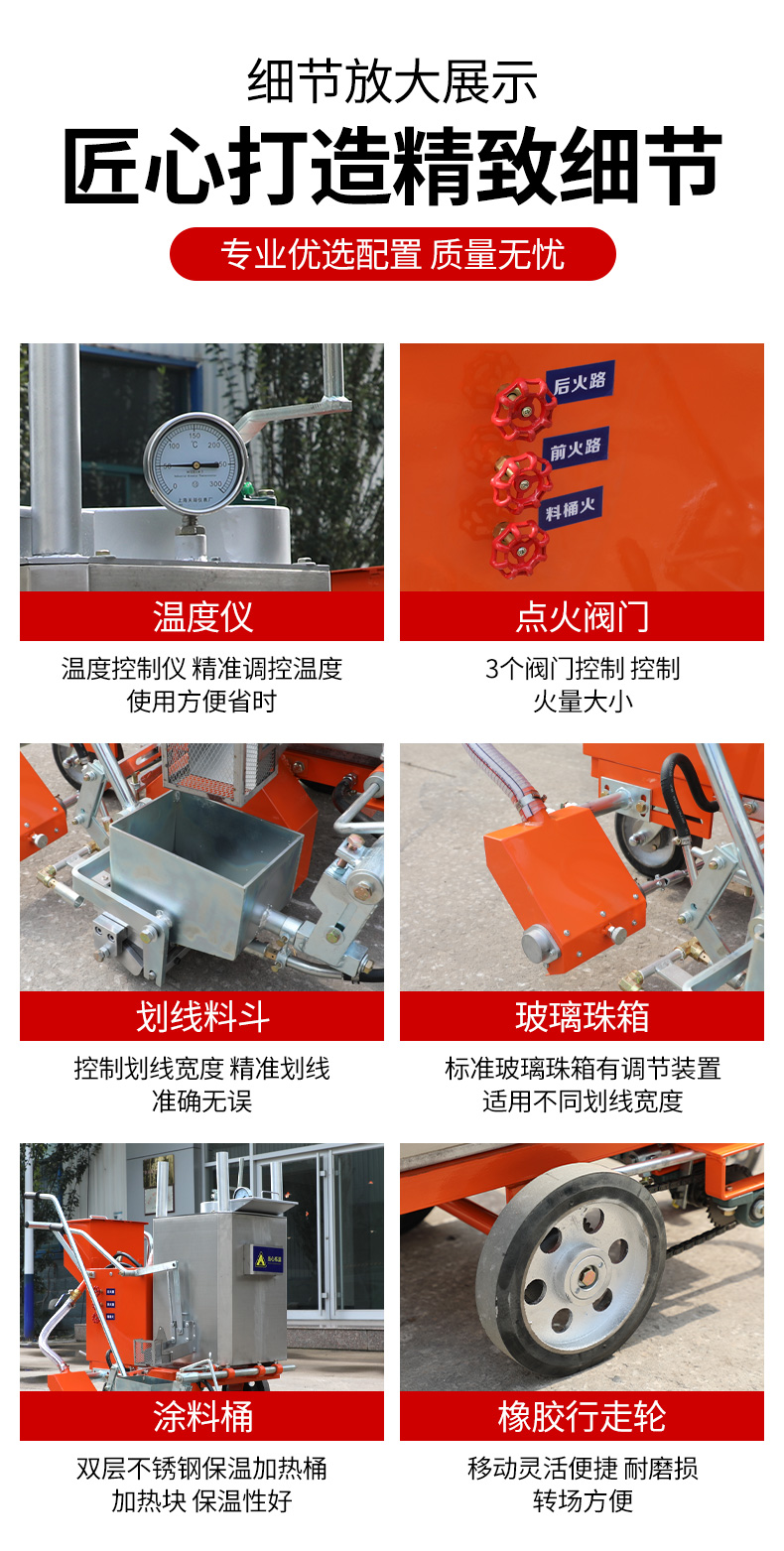 一:產品用途 多功能熱熔劃線機是我公司根據市場需求,獨立研發生產的一款新型劃線機,該機集熔料與劃線一體,可獨立完成各類線型的施劃。對工程量較小零散復雜的停車位、場區