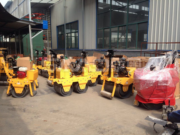 【批量手扶、座駕小型壓路機等待包裝發(fā)往目的地!】