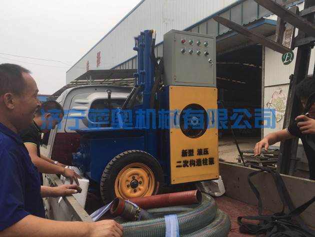 該二次構造柱泵設備泵機配置高,全液壓操作,性能穩定,采用活塞結構自動空壓技術,工作壓力大,泵送距離遠,泵送高度高,垂直輸送距離10m,水平輸送距離30m。