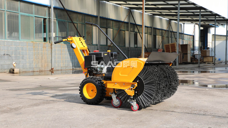 新款小型掃雪機機型小巧,非常適合于在小區街道、公路路面、學校操場、公園廣場等場所進行清掃作業。小型掃雪機滾刷是由尼龍繩和鋼絲編制而成,硬度大更耐用,清掃積雪干凈,且功能多樣,除了能進行掃雪外,還可以更換拋雪屬具,將成塊的厚雪打碎然后拋到路邊或運輸車內,更換成推雪鏟進行鏟雪也是非常方便。