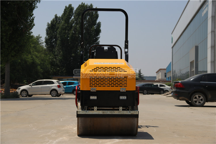 6、施工完之后,把小型壓路機停在一個相對安穩的地方,拉動駐車制動器然后鎖好駕駛室的門,用三角形木頭或石頭把輪子固定好。