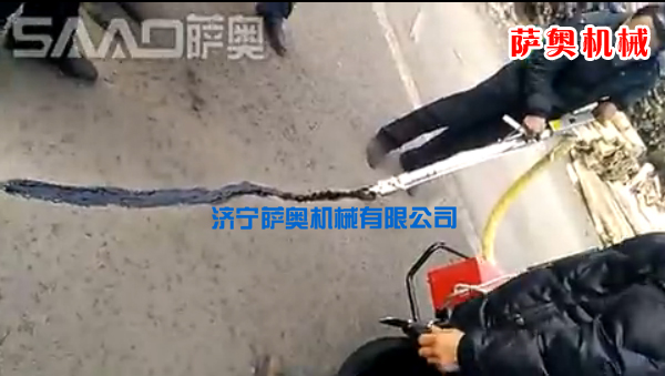 5、灌縫:若在氣溫低于7℃時,使用熱噴槍對開好的槽進(jìn)行預(yù)熱以提高密封膠粘結(jié)力;如槽有潮氣,使用熱噴槍干燥處理。將加熱好的密封膠均勻地灌入槽內(nèi),并在裂縫兩側(cè)拖成一定寬度與厚度的封層。
