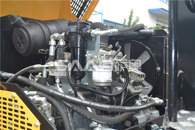 潤滑油缸座與鉸接架時需轉動方向盤以暴露全部油嘴,此時操作人員絕對不許靠近鉸接架。只有待停熄發動機后并加以制動,才可以近前加油。