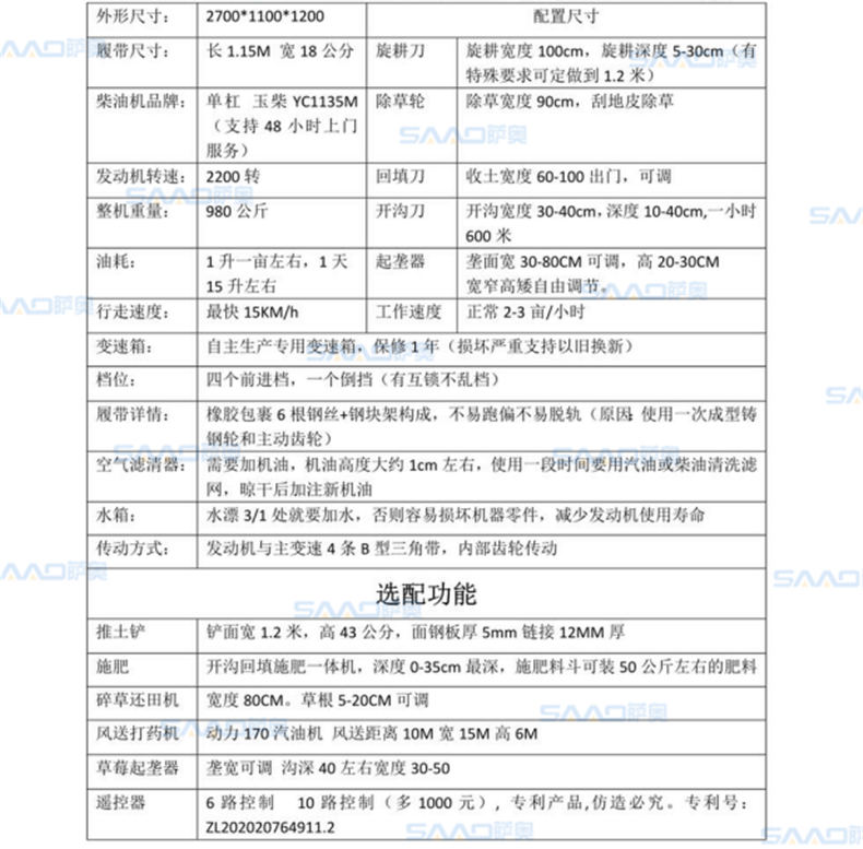選配:推土鏟、施肥器、打藥機、碎草機等