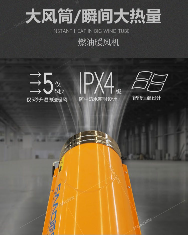 燃油暖風機可控制區間溫度為5-90度,風量更大,升溫更快,在木材的烘干等方面有巨大的功效,非常適合大面積的工業場所使用。