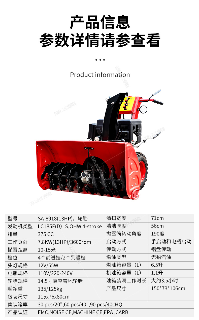 8918(13HP)手推式拋雪機(紅色)