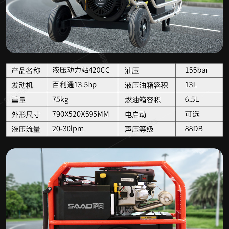 【產品用途】 在公路市政養護、燃氣自來水搶修、地震和消防救援作業中提供方便可靠的動力源。 【產品介紹】 液壓動力站是為各種液壓工具提供液壓動力的泵站,像液壓渣漿泵、液