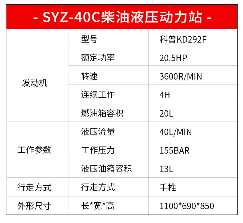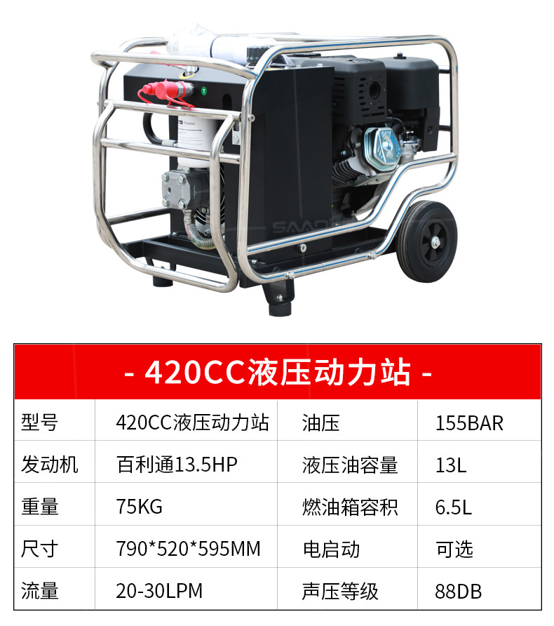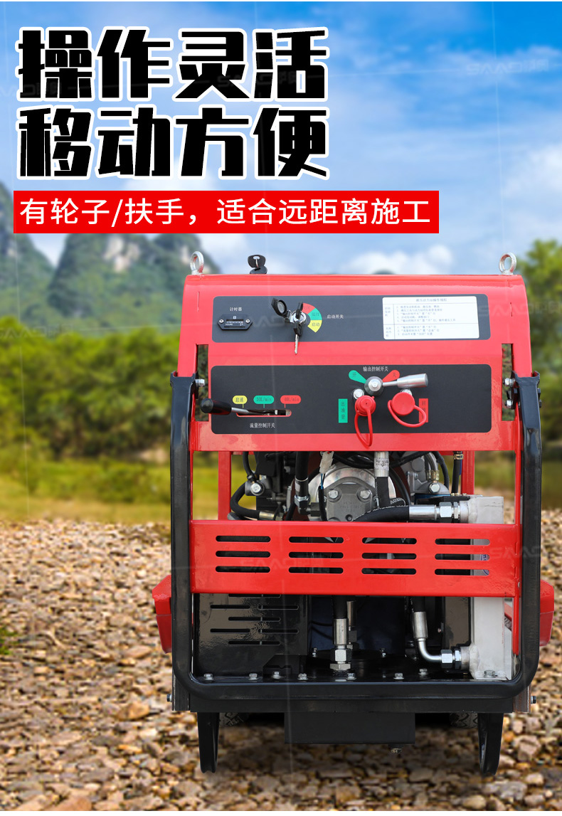 液壓動力站采用先進的技術,可提供汽油或柴油風冷式內燃發動機,燃燒效率高,重量輕,堅固耐用,使用壽命長,且不用擔心發動機過載。