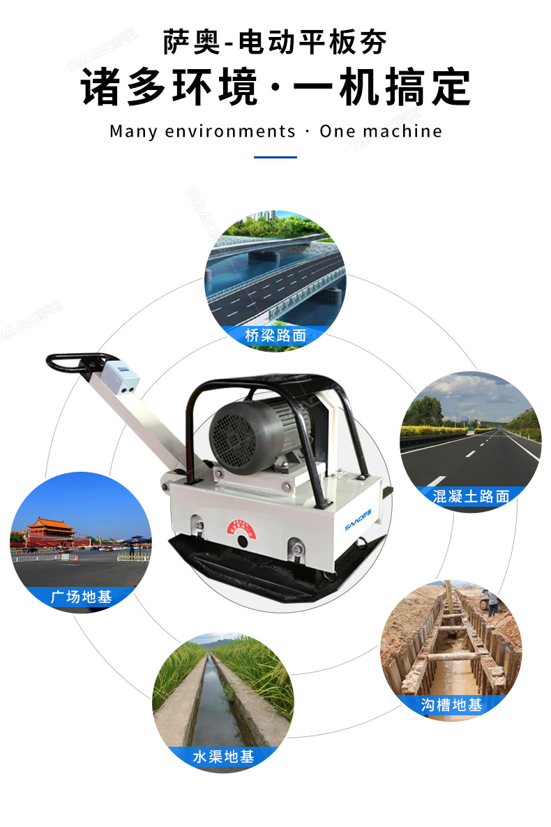 電動平板夯是一種理想的混凝土基礎面層及一般混凝土構件表面振實的工具,也是一種理想的夯實土壤、砂土、碎石的機械??蓮V泛的使用于建筑工程,預制構件廠,筑路工程及堤防工