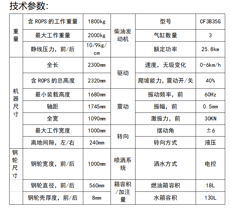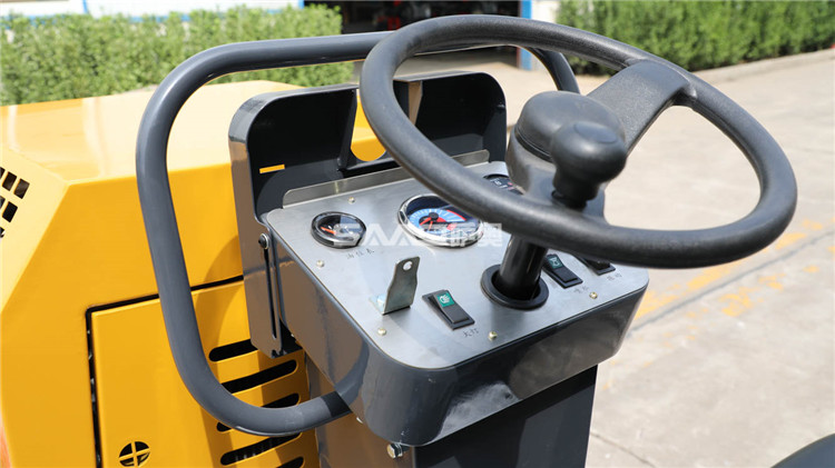 此款壓路機(jī)自重1050kg,振動(dòng)力可達(dá)3噸,液壓轉(zhuǎn)向。