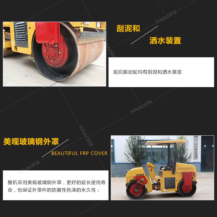 4,前后振動輪均有刮泥和灑水裝置;
