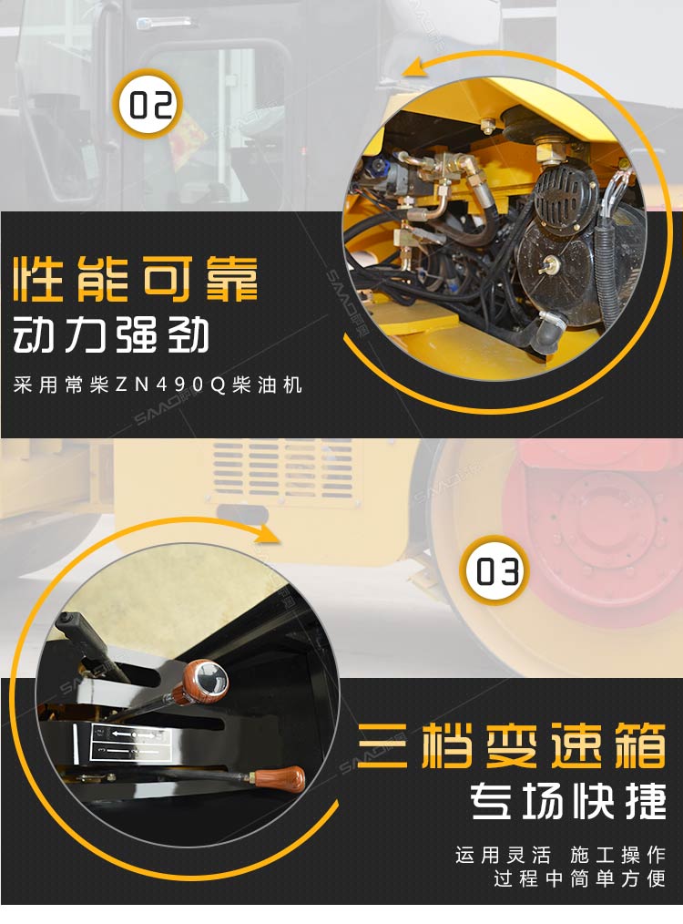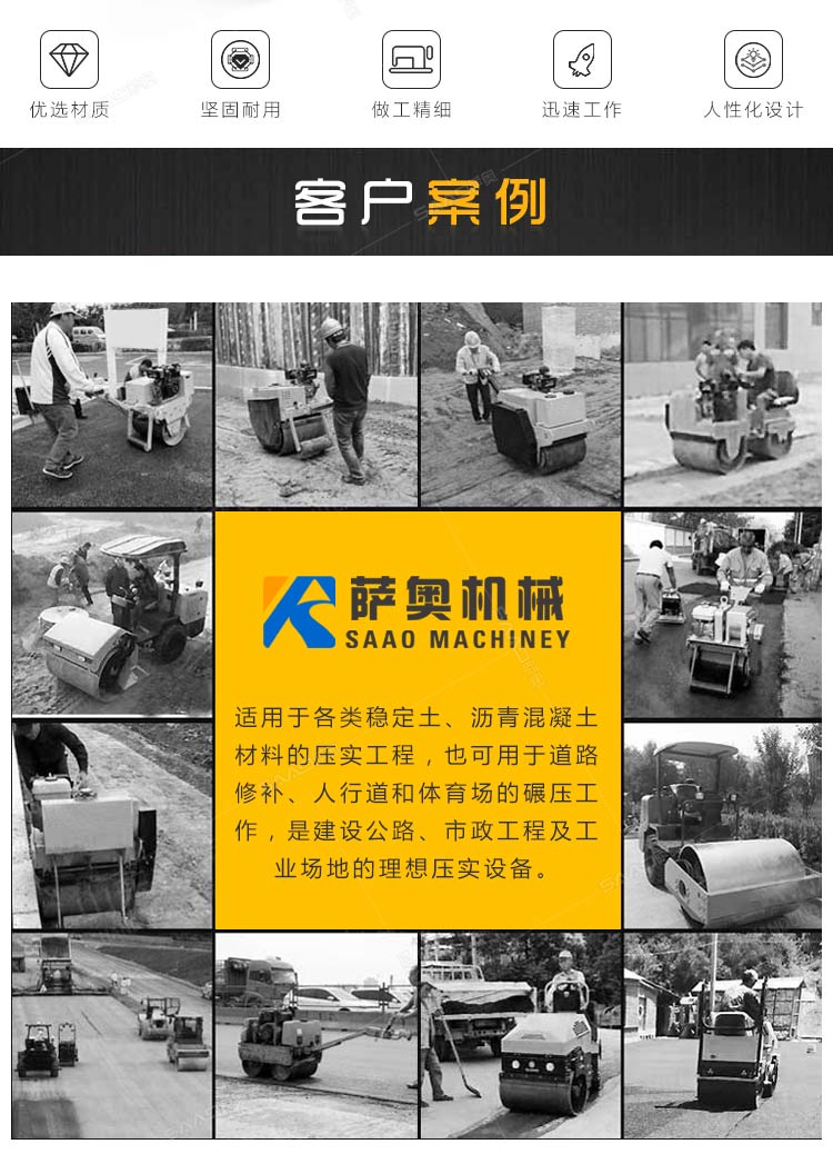 該機(jī)是兩輪串聯(lián)振動(dòng)壓路機(jī),適用于各類穩(wěn)定土、瀝青混凝土材料的壓實(shí)工程,也可用于道路修補(bǔ)、人行道和體育場的碾壓工作,是建設(shè)公路、市政工程及工業(yè)場地的理想壓實(shí)設(shè)備。